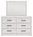 | Details | Includes dresser and mirror, Made with engineered wood (MDF/particleboard/plywood) and decorative laminate for the right balance of affordability and durability, Whitewash replicated worn through paint with authentic touch, Decorative laminate replicates natural or man-made material surfaces with consistent color, pattern and texture, Large handles in black finish, 6 smooth-gliding drawers, Framed front and pilasters, Mirror attaches to back of dresser, Safety is a top priority, clothing storage units are designed to meet the most current standard for stability, ASTM F 2057 (ASTM International), Drawers extend out to accommodate maximum access to drawer interior while maintaining safety, Minor assembly required | |