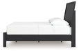 Sophisticated style for the savvy shopper. This panel bed prioritizes affordable, on-trend design. Its subtle replicated texture recalls the natural beauty of wood, highlighting the clean-lined styling. And a matte black finish suits different approaches to modern aesthetics. Mix and match with light and bright hues, or pair with other dark tones for a moody look.