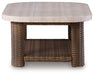 Get back to nature with the relaxed styling of this outdoor coffee table. Crafted with a sturdy aluminum frame and resin wicker, it offers exceptional durability and style. A smooth tabletop with softly rounded edges holds nibbles, sips and more. And don't forget the handy lower shelf. Sounds like fabulous form and function to us.