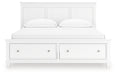 | Details | Includes panel headboard, storage footboard, rails and roll slats , Made with hardwood solids and MDF substrate, Side rails feature laminated solid hardwood slat support rails (or LVL) with glued and screwed blocking for added strength , White painted finish, Round metal drawer knobs with satin nickel-tone finish, Tapered feet, 2 smooth-gliding drawers in footboard , Bed does not require additional foundation/box spring; accommodates most zero clearance adjustable bases with the addition of a bunkie board , Mattress available, sold separately, Assembly required | |