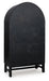 | Details | Made with hardwood solids, mango wood veneer, MDF substrate and metal, Two-tone finish (black and medium brown), Dark pewter-tone knobs, 2 glass-front doors with black metal frames, 3 fixed shelves, Assembly required | |