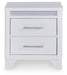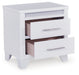 Details Made with hardwood solids and MDF substrates, White paint finish, Inset acrylic glitter accents, Horizontal metal drawer pulls, 2 drawers with fully finished interiors, dovetail construction and heavy-duty ball-bearing side glides, Textured drawer fronts