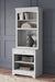 Details Includes bookcase base and bookcase hutch, Made with pine wood, veneer and engineered wood, Distressed whitewash finish, Hardware with pewter-tone finish, Base with 1 drawer and 1 shelf, Hutch with 2 shelves and LED light, Power cord included; UL Listed, Assembly required