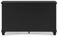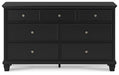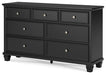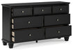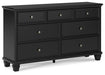 Details Made with hardwood solids, birch veneer and MDF substrate, Black painted finish, 7 smooth-gliding drawers with dovetail construction and ball-bearing side glides, Round metal drawer knobs with satin nickel-tone finish, Framed drawer fronts, Tapered feet