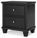 Details Made with hardwood solids, birch veneer and MDF substrate, Black painted finish, 2 smooth-gliding drawers with dovetail construction and ball-bearing side glides, Round metal drawer knobs with satin nickel-tone finish, Framed drawer fronts, Tapered feet