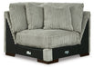 Details Includes 4 pieces: left-arm facing corner chair, wedge, armless chair and right-arm facing corner chaise, "Left-arm" and "right-arm" describe the position of the arm when you face the piece, Corner-blocked frame, Reversible cushions, High-resiliency foam cushions wrapped in poly fiber, Throw pillows included, Pillows with feather-fiber blend, Polyester upholstery, Exposed feet with faux wood finish, Platform foundation system resists sagging 3x better than spring system after 20,000 testing cycles by providing more even support, Smooth platform foundation maintains tight, wrinkle-free look without dips or sags that can occur over time with sinuous spring foundations