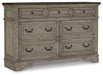 Cottage quaint styling and quality construction make this dresser a dream come true. A two-tone finish provides rustic warmth, with an antiqued gray body and a rich, deep walnut on the top. Framed drawer fronts and dark bronze-tone hardware marry classic elegance and homey charm. Seven smooth-gliding drawers are crafted with quality dovetail construction.