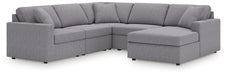 Details Includes 5 modular pieces: left-arm facing corner chaise, 2 armless chairs, wedge and right-arm facing corner chair, "Left-arm" and "right-arm" describe the position of the arm when you face the piece, Modular pieces can float anywhere; sides are finished (with no connectors), Corner-blocked frame; reversible seat and back cushions; high-quality foam cushions wrapped in poly fiber, Throw pillows included; soft polyfill, Polyester upholstery, Next-Gen Nuvella™ is a family-friendly fabric that is soft, easy to clean, stain-resistant and durable, Easy-to-remove zippered covers for machine washing, Clean fabric with mild soap and water, let air dry; for stubborn stains, use a solution of 4 oz. bleach to 28 oz. water, Non-skid legs, Platform foundation system resists sagging 3x better than spring system after 20,000 testing cycles by providing more even support, Smooth platform foundation maintains tight, wrinkle-free look without dips or sags that can occur over time with sinuous spring foundations