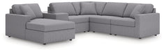 Details Includes 6 modular pieces: left-arm facing corner chaise, 2 armless chairs, console with storage, wedge and right-arm facing corner chair, "Left-arm" and "right-arm" describe the position of the arm when you face the piece, Modular pieces can float anywhere; sides are finished (with no connectors), Corner-blocked frame, Loose reversible seat and back cushions; high-quality foam cushions wrapped in poly fiber, Throw pillows included; soft polyfill, Polyester upholstery, Next-Gen Nuvella™ is a family-friendly fabric that is soft, easy to clean, stain-resistant and durable; easy-to-remove zippered covers for machine washing, Clean fabric with mild soap and water, let air dry; for stubborn stains, use a solution of 4 oz. bleach to 28 oz. water, Non-skid legs, Console with plexiglass top; pull-out drawer for storage, Platform foundation system resists sagging 3x better than spring system after 20,000 testing cycles by providing more even support, Smooth platform foundation maintains tight, wrinkle-free look without dips or sags that can occur over time with sinuous spring foundations