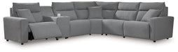 Looking cool and contemporary is great. But when it comes down to it, you’re all about low-maintenance lounging. With the performance fabric on this power reclining sectional, cleaning spills is a breeze. Its modular design caters to your ever-changing needs. And the console's plexiglass top is the perfect beverage perch during family movie night or when guests drop by. It's proof that modern design and superb comfort go hand in hand.