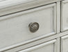 Details Made with hardwood solids, acacia wood veneer, MDF substrate and cast resin components, Antiqued white finish, 4 smooth-gliding drawers with felt lining, fully finished interiors, dovetail construction and heavy-duty ball-bearing side glides, Open shelf, Assembly required