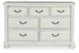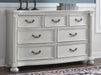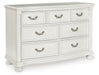 Details Made with hardwood solids, veneer and MDF substrate with cast resin components, Antiqued white finish, Metal pulls with polished pewter-tone finish, 7 smooth-gliding drawers with fully finished interiors, Drawer with French/English dovetail construction and heavy-duty ball-bearing side glides (top drawers felt lined), Thick decorative moulding, Reeded bun feet