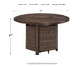 Turn your backyard space into your own piece of paradise with the Paradise Trail outdoor table with fire pit. Though this outdoor table looks remarkably like wood, it’s made of sturdy, rust-proof aluminum that’s perfectly suited for alfresco living. Enhancing the rustically refined aesthetic: side panels accented with all-weather, handwoven resin wicker. The result may look high maintenance, but rest assured, this outdoor fire pit table is anything but. With the press of a button, ignite a flickering flame that dances over a bed of glass beads. And with room for up to eight, it’s one highly accommodating outdoor bar table.