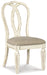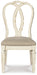 | Details | Made with wood and engineered wood, Distressed, chipped white finish, Stylized ribbon back design, Polyester upholstery over foam cushioned seat, Assembly required | |