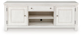 This TV stand is sure to impress when it’s time to relax after a tough day. With an antiqued white finish and wood grain texture, modern farmhouse-style design has never been so fashionable. Its cabinets and adjustable shelves are ideal for keeping all your equipment well organized and displaying your treasures. And that storage drawer is perfect for smaller accessories, bringing even more function to your entertainment space. All that’s missing is you.