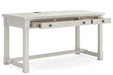 | Details | Made with hardwood solids, oak veneer and MDF substrates, Antiqued white finish with wood grain texture, Round metal knobs with dark bronze-tone finish, Smooth-gliding accessories drawer, Wide keyboard drawer with drop-down front, 110V power supply with USB-A and USB-C charging ports, Power cord included; UL Listed, Assembly required | |
