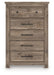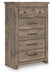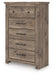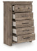 Classically chic. This chest of drawers marries traditional design with modern accents. Its deep brown finish recalls the authentic touch of hickory grain for a rich look and feel. Assorted drawers neatly store your essentials in charming fashion. Sincere in its styling, this piece sets the scene for a warm, welcoming vibe in your bedroom.
