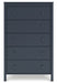| Details | Made with engineered wood (MDF/particleboard/plywood) and decorative laminate for the right balance of affordability and durability, Matte navy blue finish, Decorative laminate replicates natural or man-made material surfaces with consistent color, pattern and texture, Knobs with matte navy blue finish, 5 smooth-gliding drawers with vinyl-wrapped sides and back for durability, Safety is a top priority, clothing storage units are designed to meet the most current standard for stability, ASTM F 2057 (ASTM International), Drawers extend out to accommodate maximum access to drawer interior while maintaining safety, Assembly required | |