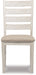 | Details | Made of wood and engineered wood, Distressed grayish white finish, Cushioned seat with polyester upholstery, Tall ladderback design, Assembly required | |