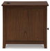 Add big character to a small space with this chairside end table. With its compact size and strong silhouette, it can go anywhere and blend easily into the decor. Less is so much more with the Shaker-inspired design and warm brown wood tone finish. Loaded with form and function, this end table displays accent pieces and stores essentials securely while keeping devices powered up.