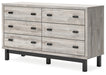 | Details | Made with engineered wood (MDF/particleboard/plywood) and decorative laminate for the right balance of affordability and durability, Light gray finish over a replicated oak grain with authentic touch; base has matte black finish with subtle replicated wood grain, Decorative laminate replicates natural or man-made material surfaces with consistent color, pattern and texture, Handles with matte black finish, 6 smooth-gliding drawers, Drawer interiors are lined with a faux linen laminate for a clean, finished look, Safety is a top priority, clothing storage units are designed to meet the most current standard for stability, ASTM F 2057 (ASTM International), Drawers extend out to accommodate maximum access to drawer interior while maintaining safety, Assembly required | |