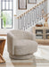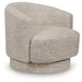 Relaxation meets refinement in this accent chair. With an ultra-soft fabric in a crisp, light neutral, it invites you to curl up in comfort. A 360-degree swivel provides added versatility. Drape a throw blanket over the back, or add an accent pillow for a pop of color—with this chair, the possibilities for cozy-contemporary style are endless.